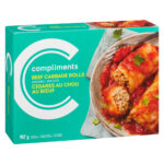 Water, cabbage, beef, tomatoes (diced tomatoes, tomato juice, citric acid, calcium chloride), onion, tomato paste, rice, sugar, corn starch, salt, garlic, vinegar, spices, garlic powder, onion powder.